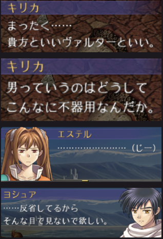 - 为了特殊对话自然是要带因缘角色入队的,雪拉和金还是系统强制,公主虽然有对话但不是强制,提妲明明是强制但是你(在剧情上)好像没有起到什么作用啊就开了一两次口当个气氛组,其他时间全是小艾在打嘴炮